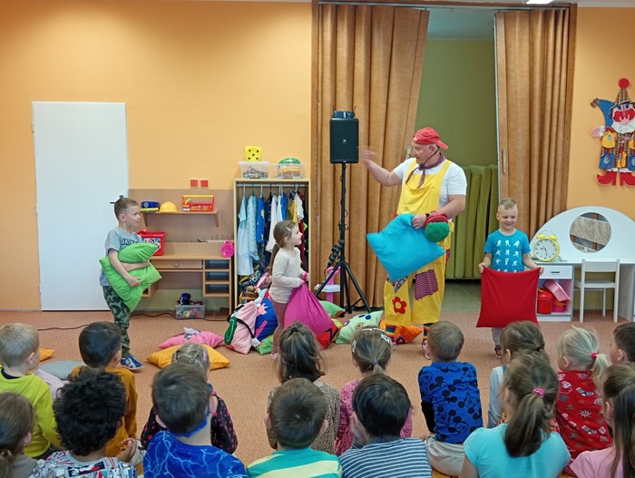 V úterý 9. května se v mateřské škole konalo divadelní představení Honzy Krejčíka „První slovo platí, druhé leze z gatí“. Celý program byl zábavný, poučný a plný písniček. Z některých dětí se stali malí herci a stali se tak součástí vystoupení. Divadelní představení se všem moc líbilo.