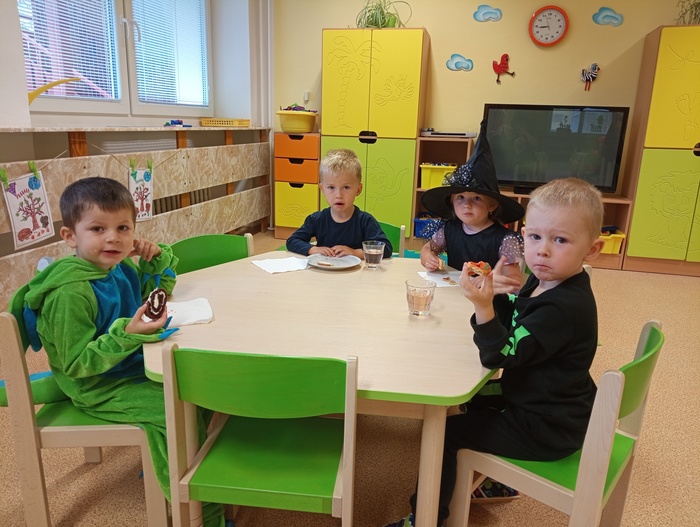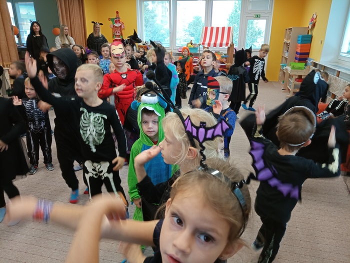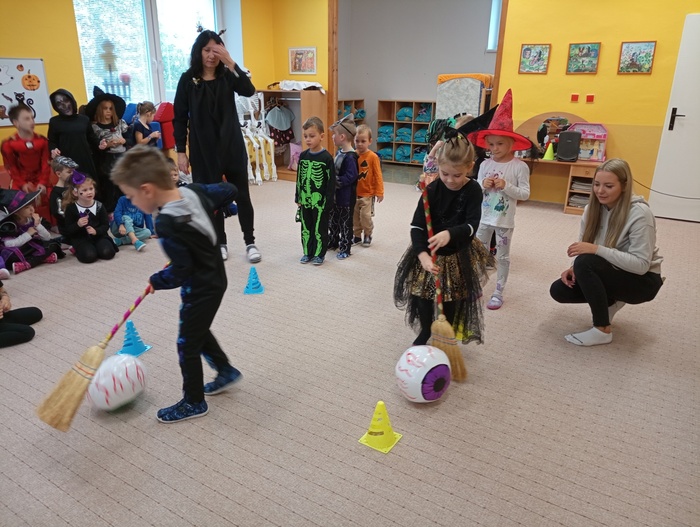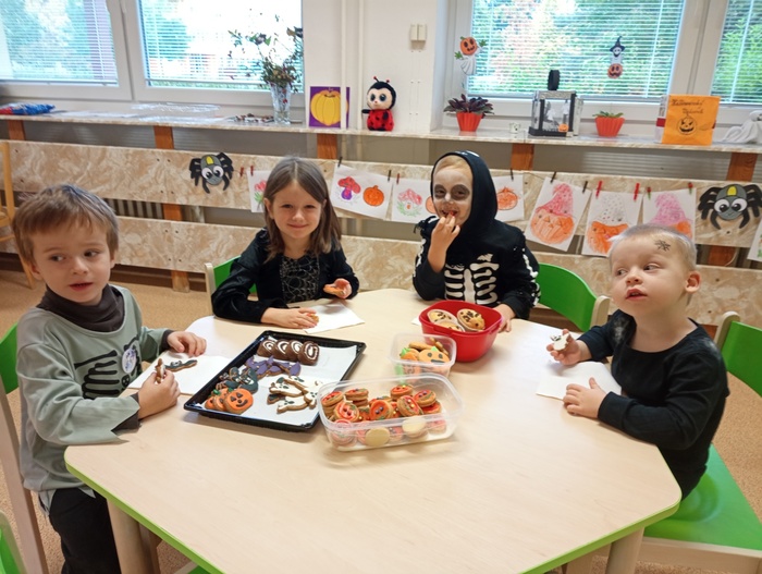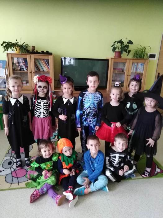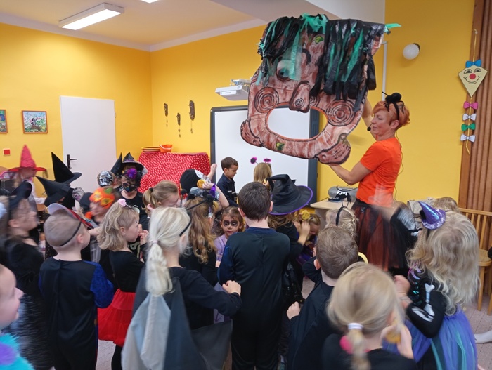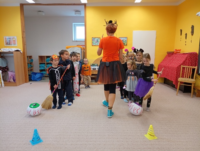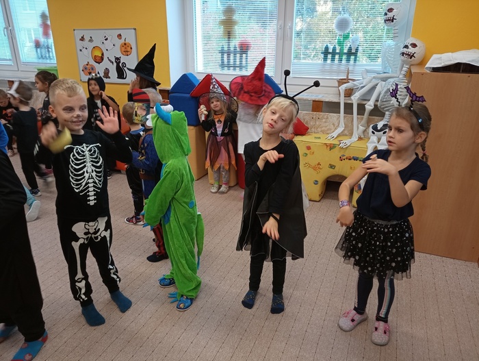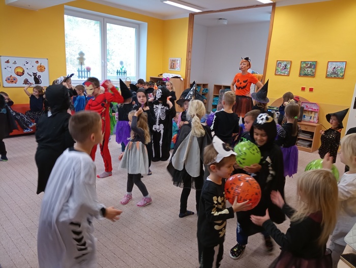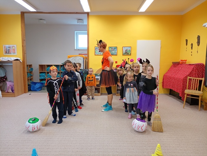 V pondělí 30. října jsme ve školce slavili Halloween. Třídy mateřské školy byly vyzdobeny halloweenskou výzdobou. Děti i paní učitelky přišly již ráno oblečené do kostýmů čarodějek, kostlivců, dýní a jiných strašidýlek. Společně s divadlem Kejkle jsme zpívali, tancovali a soutěžili. Děkujeme všem rodičům za přípravu krásných kostýmů a "halloweenských dobrot" pro děti. Všichni jsme si krásné dopoledne moc užili.