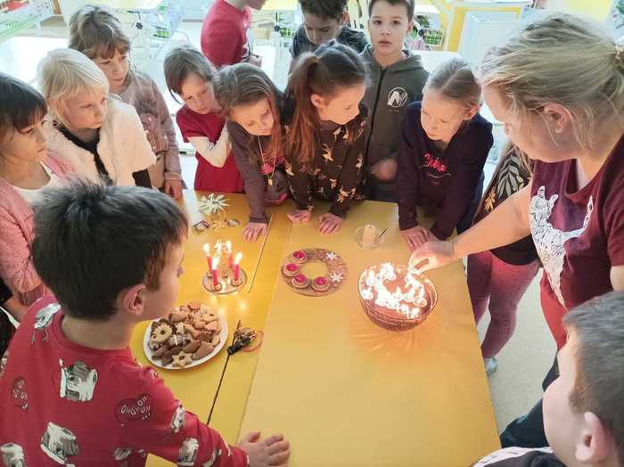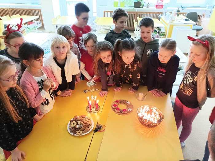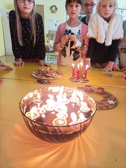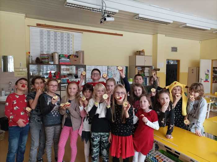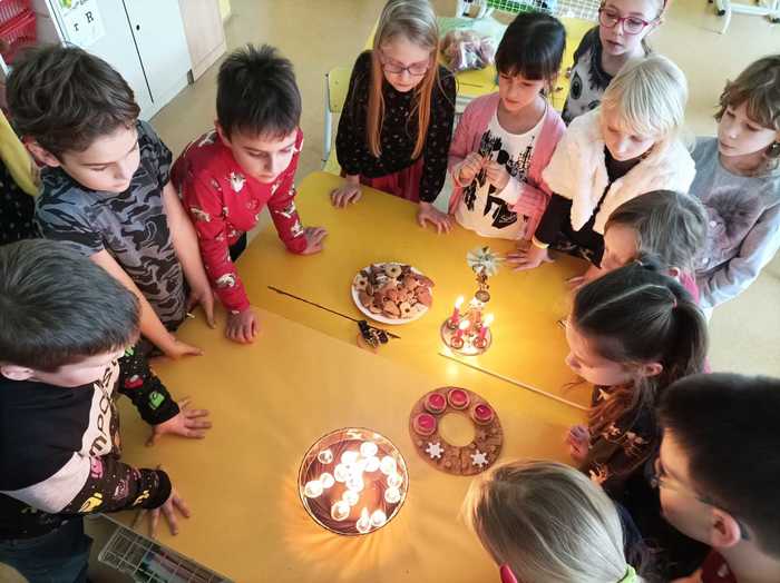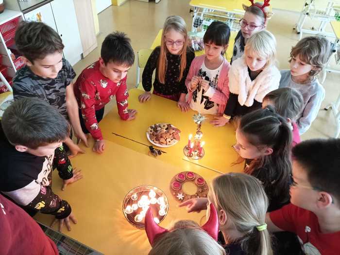 Vánoční tradice a zvyky ve školní družině V posledním týdnu před Vánoci jsme si ve školní družině připomněli vánoční zvyky a tradice našich babiček. Pouštěli jsme si ořechové skořápky se svíčkami, rozkrajovali jablíčka, házeli střevícem nebo zapalovali Františka a k tomu si pouštěli vánoční koledy. Děti napjatě poslouchaly, jak se Vánoce slavily dříve a snad si i uvědomily jejich pravý význam...